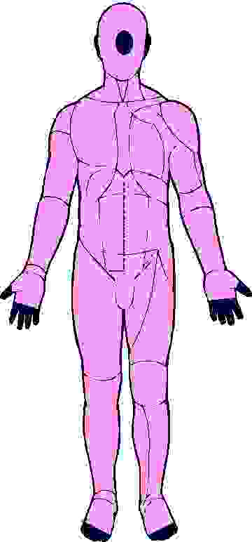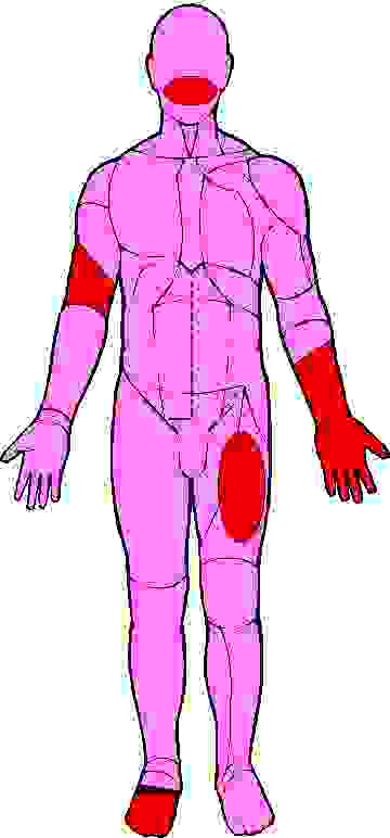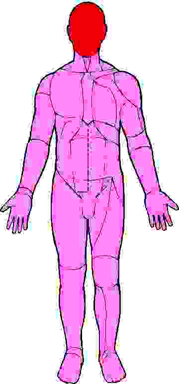Zum Abschätzen der verbrannten Körperoberfläche dient die sogenannte Neunerregel: